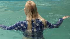 8:32 min. movie (1080p MP4, 443 Mb) and 259 images (115 Mb) of Miranda in the pool in a shirt, jeans, sneakers and socks.