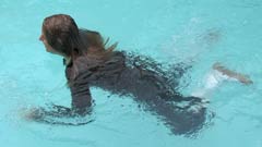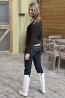 9:08 min. movie (1080p MP4, 473 Mb) and 261 images (130 Mb) of Marieke in an outdoor pool in a sweater over a tshirt, jeans, white boots and socks.