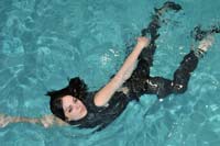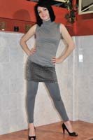 9:47 min. movie (1080p MP4, 506 Mb) and 282 images (incl. 18 images by somebody else, 144 Mb) of Alina in the pool in a grey shirt, skirt, grey leggings and heels.