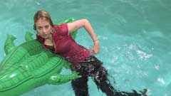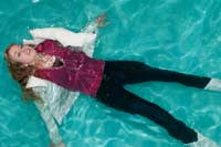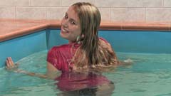 16:02 min. movie (1080p MP4, 827 Mb) and 2 series of images (made simultaneously): 326 and 212 images (239 Mb) of Sandy in the pool in a white leather jacket over a tshirt, jeans, white boots and socks.