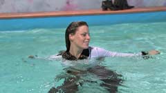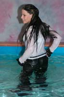 254 and 157 images of Sandra in the pool in a white longsleeve, black pants, boots and long panty socks.