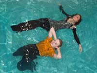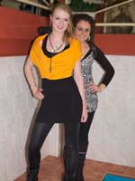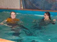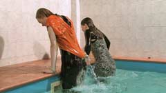 189 and 285 images (292 Mb) of Masha & Lisa in the pool in dresses, black leggings, boots and socks.