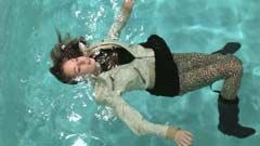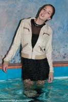 196 and 129 images (157 Mb) of Michelle in the pool in a white leather jacket over a dark dress, leggings, boots and socks.