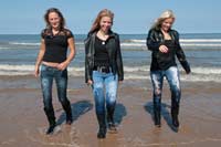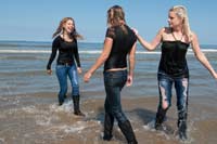 437 images (218 Mb) of Jennifer, Sheila & Maria in the North Sea in jeans, tops, boots and socks, Jennifer and Maria with leather jackets.