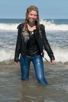 437 images (218 Mb) of Jennifer, Sheila & Maria in the North Sea in jeans, tops, boots and socks, Jennifer and Maria with leather jackets.