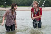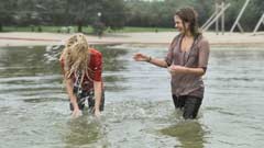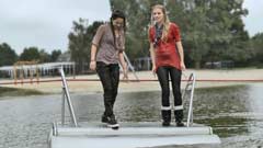 90 and 79 images (95 Mb) of Nina & Melissa playing with a kind of raft on a rope in a lake: