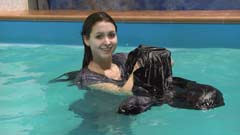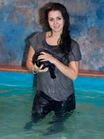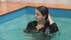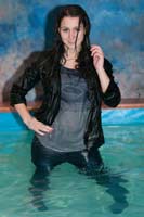 239, 104 and 84 images (213 Mb) of Melanie in the pool in a blue blazer over a striped tshirt, jeans, shoes and socks.
