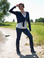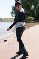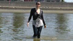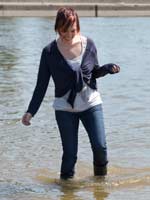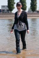 249 and 203 images (245 Mb) of Kimberley in the river in a cardigan over a white top, jeans, boots and socks.