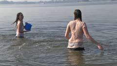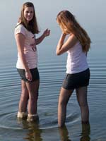 107 and 93 images (102 Mb) of Nicky & Manon in a lake in short leather skirts and pantyhose: