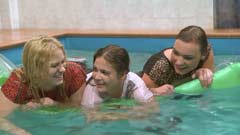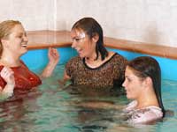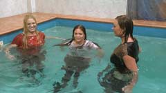 90, 229 and 110 images (253 Mb) of Kim, Nina & Sophie in the pool in jeans and shirts,