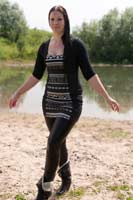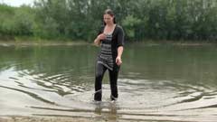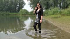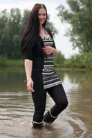 130 and 151 images (147 Mb) of Sharon in a lake wearing a dress, shiny leggings and boots.