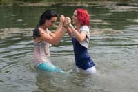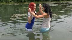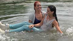 140 and 126 images (154 Mb) of Masha and Merlin in a lake in pants and shirts: