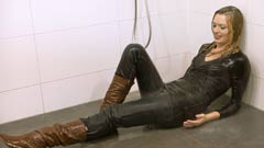 7:51 min. movie (1080p MP4, 407 Mb) and 166 images (58 Mb) of Lisa in the shower in jeans, longsleeve and boots.