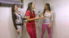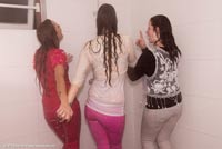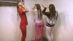 9:05 min. movie (1080p MP4, 471 Mb) and 255 images (95 Mb) of Nelly, Cherry and Patricia taking a shower in pants and shirts,