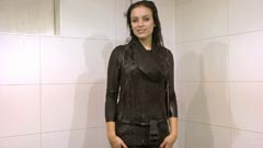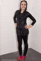 6:46 min. movie (1080p MP4, 352 Mb) and 89 images (34 Mb) of Shannen in the shower in a long black pulluver, tight black pants and grey boots.