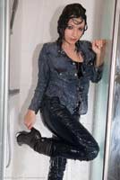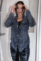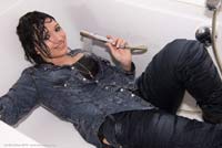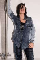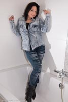 232 images (112 Mb) of Nikita taking a shower in a denim shirt over a dark top, jeans, boots and white socks.