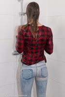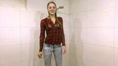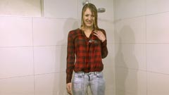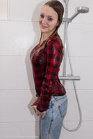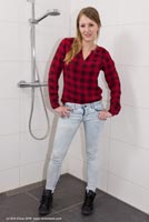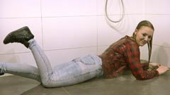 4:46 min. movie (1080p MP4, 249 Mb) and 115 images (41 Mb) of Laura in the shower in jeans, shirt and black sports shoes.
