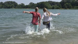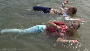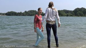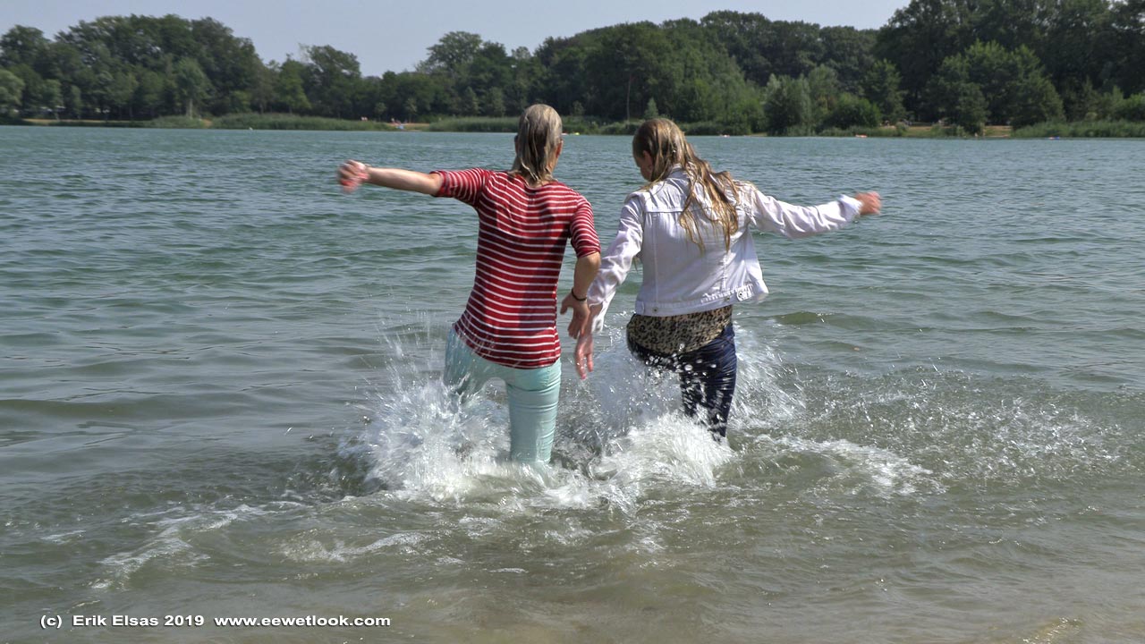 5:52 min. movie (4K and 1080p MP4, 1,58 Gb / 563 Mb, with not so good sound because of the windnoise) and 88 images (46 Mb) of Melissa and Michella in a lake on a very windy day: