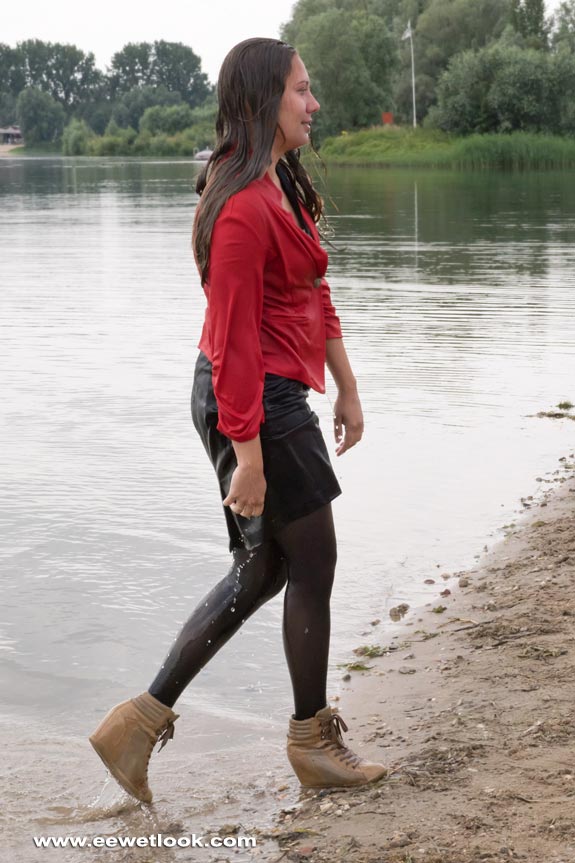 In the second half, she takes her jacket off, and at the end, also her shoes.